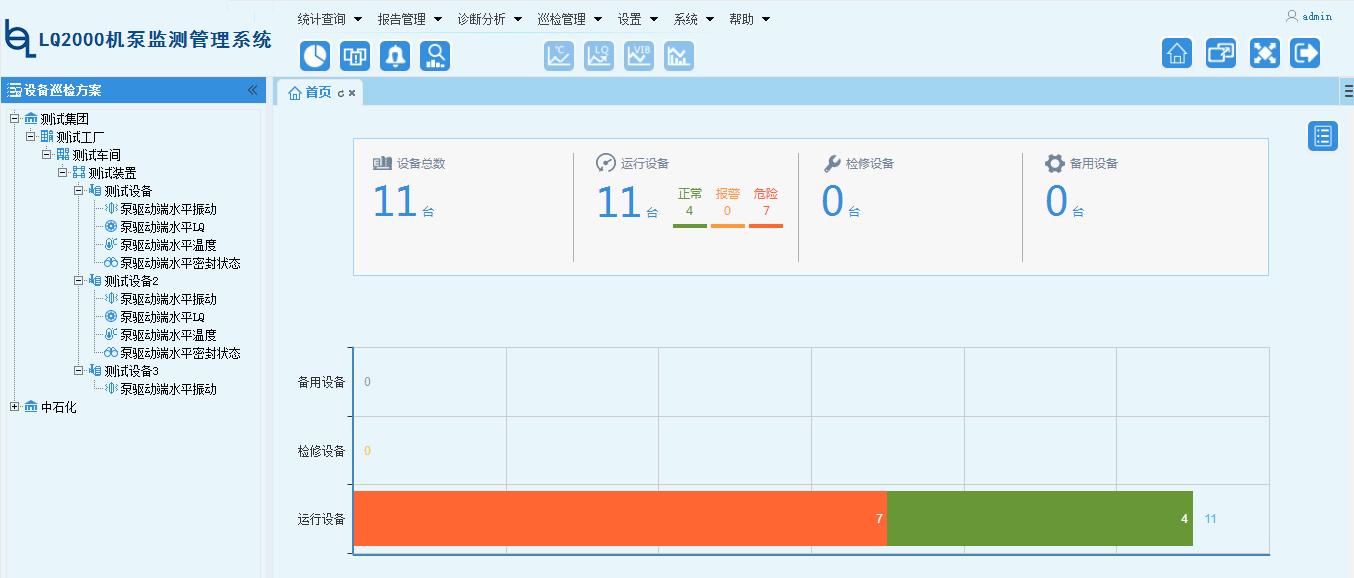 LQ2000機(jī)泵監(jiān)測(cè)管理系統(tǒng)(巡檢)針對(duì)石化企業(yè)設(shè)備管理的現(xiàn)狀和管理信息化的需求而推出的機(jī)泵監(jiān)測(cè)管理系統(tǒng),系統(tǒng)采用LQ滾動(dòng)軸承檢測(cè)核心技術(shù),集巡檢數(shù)據(jù)采集與存儲(chǔ)、設(shè)備運(yùn)行狀態(tài)查查詢、數(shù)據(jù)查詢、報(bào)警查詢、振動(dòng)波形頻譜分析,基于互聯(lián)網(wǎng)、局域網(wǎng)數(shù)據(jù)共享,能有效地對(duì)高危機(jī)泵設(shè)備進(jìn)行監(jiān)測(cè),為設(shè)備管理人員提供詳實(shí)的機(jī)泵運(yùn)行信息,及時(shí)預(yù)報(bào)故障、對(duì)高危機(jī)泵群的運(yùn)行狀態(tài)一目了然,使高危機(jī)泵的設(shè)備管理水平更上一個(gè)新的臺(tái)階。